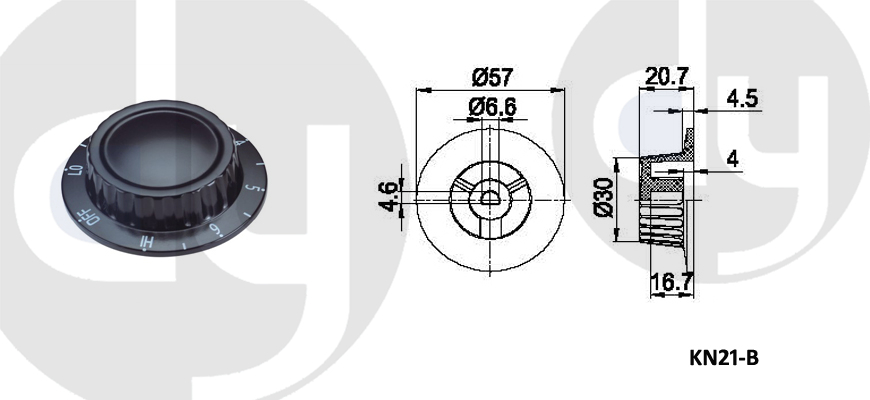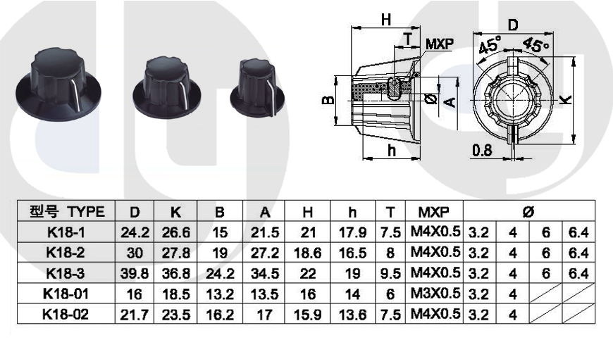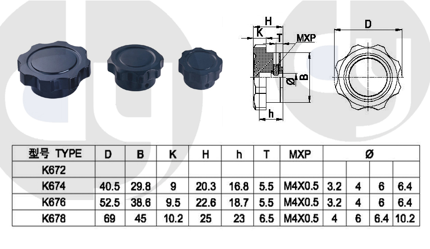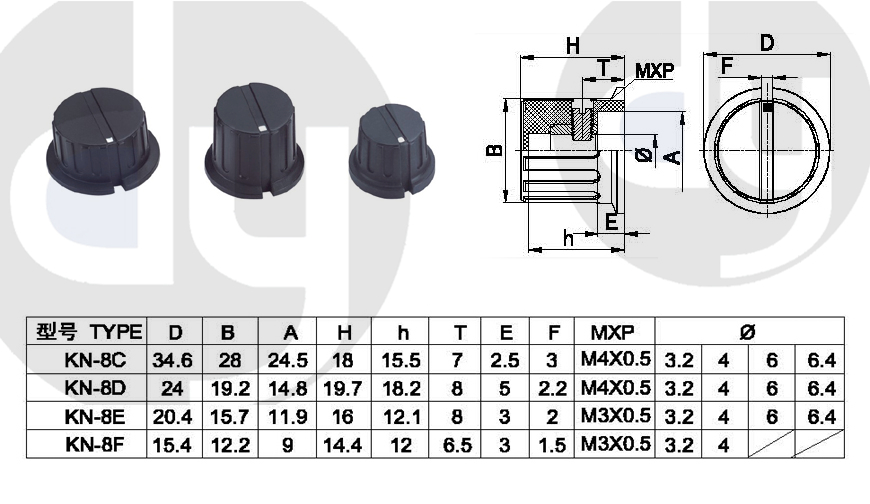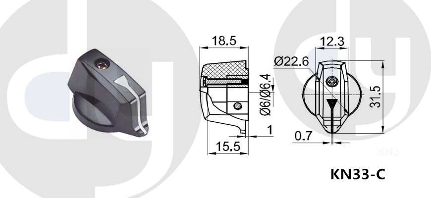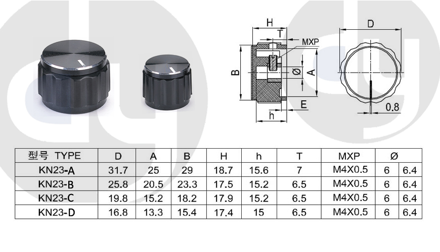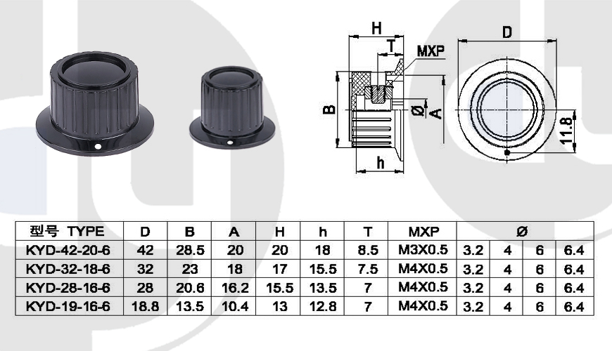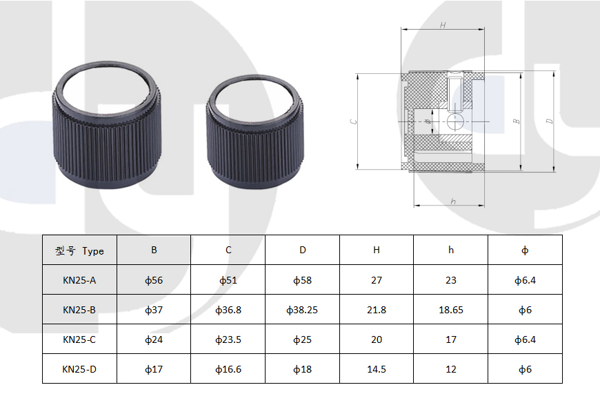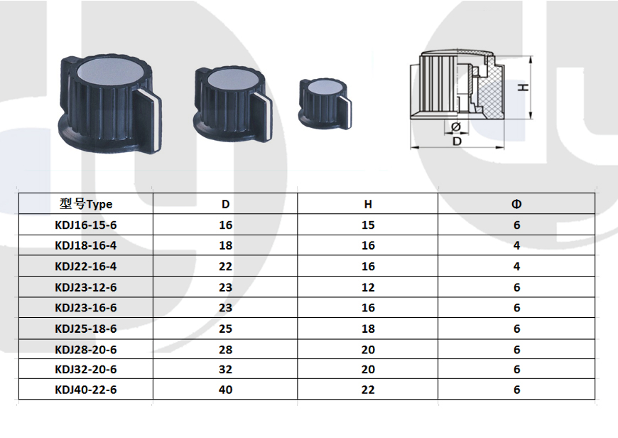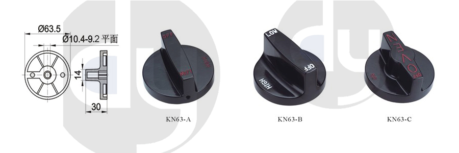 橡膠旋鈕:一般由塑料和軟膠混合制成,外部有少許橡膠觸感,可定制多色,適用于6mm齒形手柄或半圓手柄