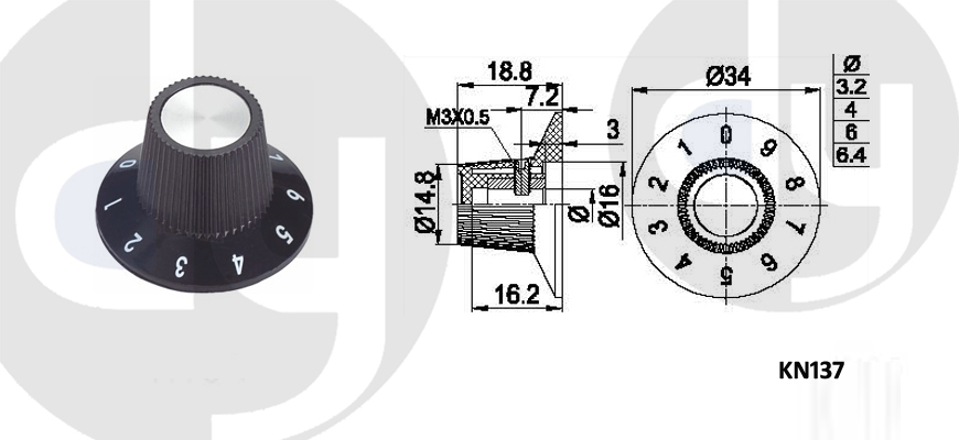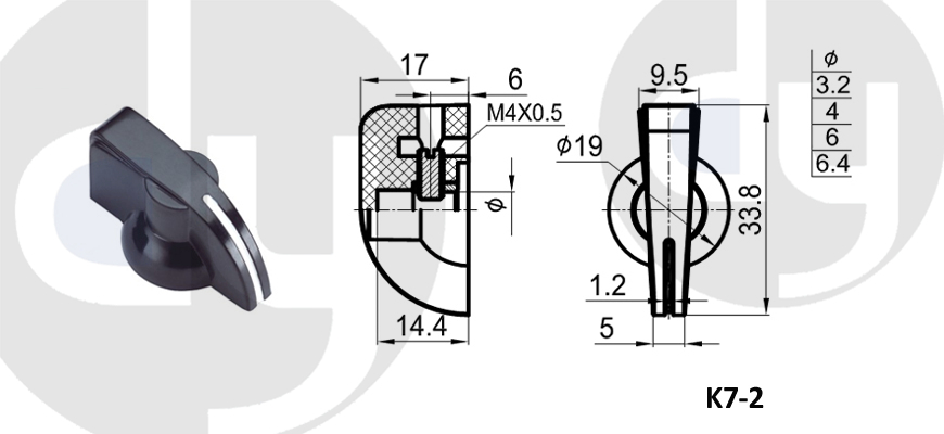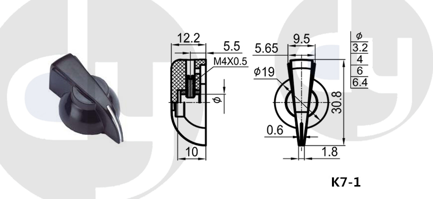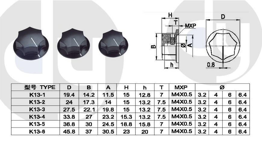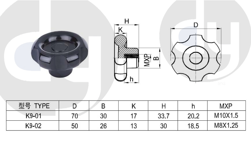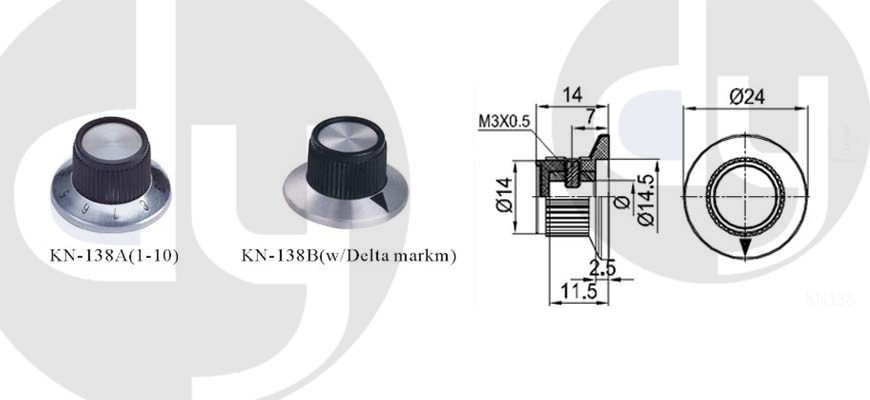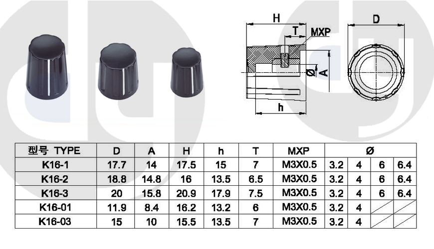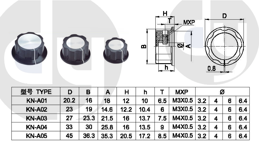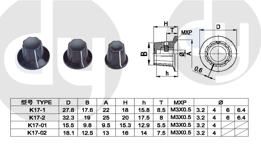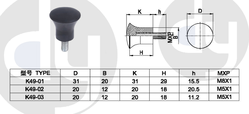 橡膠旋鈕:一般由塑料和軟膠混合制成,外部有少許橡膠觸感,可定制多色,適用于6mm齒形手柄或半圓手柄