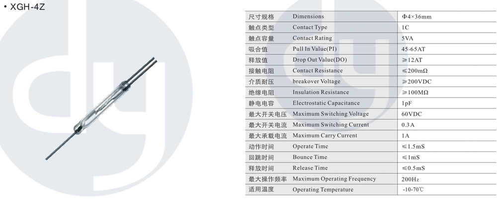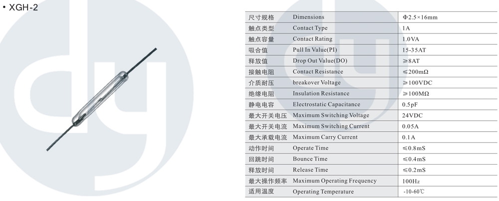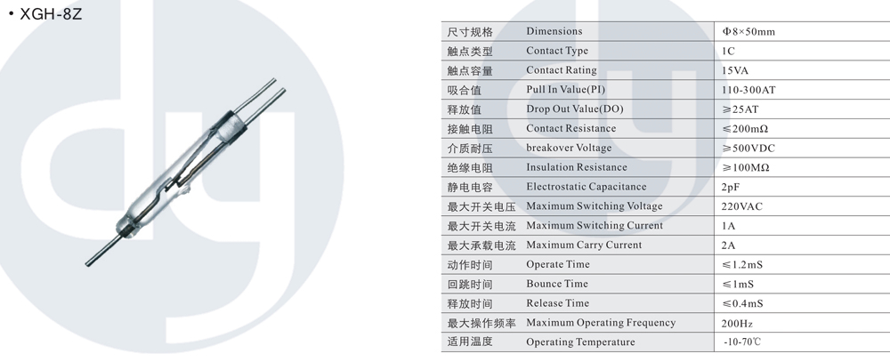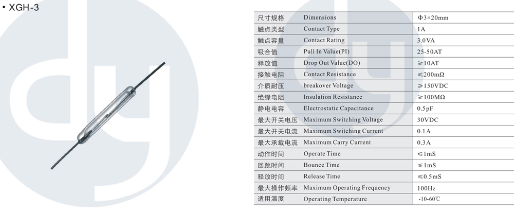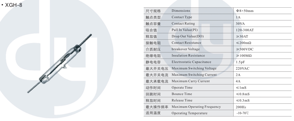 干簧開關(guān):主要涉及尺寸有10mm,14mm,20mm,28mm,36mm,46mm,50mm等,并可根據(jù)客戶要求定制啟動(dòng)值范圍,終端鍍金或銀,玻璃白管或綠管及封塑等。
